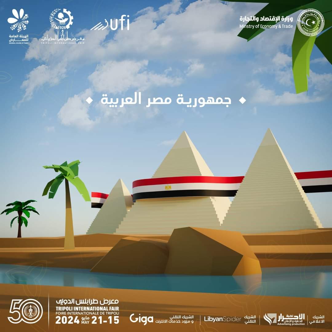 لعل العمق التاريخي لمعرض طرابلس الدولي وكونه عميد التجارب العربية جعله يستقطب نظرائه من البلدان العربية هذه المرة جمهورية مصر العربية حيث التاريخ والحضارة وعبق الزمن. مصر ستكون من ضمن البلدان التي ستشارك بالدورة 50 لمعرض طرابلس الدولي وستكون المشاركة متنوعة وبعدة شركات ومؤسسات تعكس حجم التطور ونمو الصناعات في البلادوستكون مناسبة لتبادل الخبرات والمساهمة في حركة عودة الحياة ودعم إقتصاد البلدين.. تقع جمهورية مصر العربية في الجانب الشمالي الشرقي للقارة الأفريقية وعلى الركن الجنوبي الغربي للقارة الأسيوية عبر جسر تشكل مع شبه الجزيرة العربية..يبلع سكان مصر 110,000,000 مليون نسمه حسب إحصاءيات 2023 لتكون الخامسة عشر من حيث السكان على مستوى العالم.. عاصمتها (القاهرة) عملتها (الجنيه المصري).تبلغ مساحتها 1,010,408كيلو متر مربع.. تأسست عام 3151ق.م..وتشتهر بالعديد من الكنوز الأثرية مثل الإهرامات وأبي الهول ومعبد الكرنك..