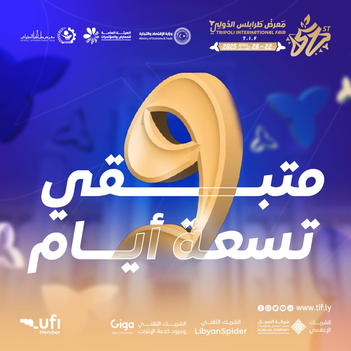 أقترب الموعد وتبقى 9 أيام فقط تفصلنا عن انطلاق الدورة الـ51 لمعرض طرابلس الدولي التي ستكون من 22-28 أبريل 2025م