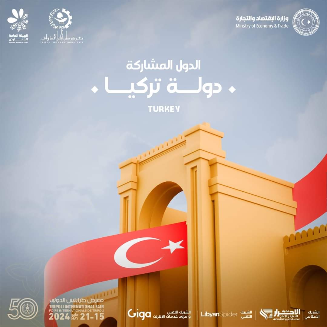 أنضمت تركيا بجناح تركي يحتوي علي اجود العروض الخدميه والانتاجيه في الدورة الذهبية ال 50 لمعرض طرابلس الدولي المقرر في شهر مايو القادم