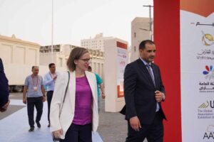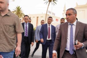 قام عشية اليوم الإثنين مستشار رئيس حكومة الوحدة الوطنية السيد/إبراهيم دبيبه ووزير الدوله للإتصال والشؤون السياسية السيد وليد اللافي بزيارة لمدينة المعارض إستقبلهم فيها الإستاذ /شكرى إلطيف نائب مدير عام معرض طرابلس الدولي..ورافق الإستاذ إلطيف الضيفان في جولة داخل مدينة المعارض أطْلعا خلالها على فعاليات الدورة الخمسين لمعرض طرابلس الدولي وماتحويه أجنحة الدول المشاركة من معروضات .. وتفقد الضيفان أجنحة الدول التي عادت للمشاركة في دورات معرض طرابلس الدولي بعد غياب بفضل إنفتاح حكومة الوحدة الوطنية على العالم وتوفير المناخ المناسب للمنافسه والتطوير ..وعبّر الضيفان على إمتنانهم لحسن التنظيم وحجم الإقبال من الجمهور الزائر مايدل عن حالة الإستقرار الإقتصادي الذي تعيشه البلاد..